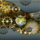 steampunk, vapor, búho, mecánico, tecnología, engranajes, oro, azul, fibra,
