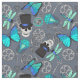 Podrás crear tu propia y divertida ropa vintage de steampunk y artículos de casa con esta tela gris fresca con motivos de cráneo en sombreros de punta, mariposas azules, ruedas cognitivas y llaves antiguas