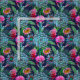Suculentos tropicales exóticos color agua, cactus y plátanos dejan flores en el jardín sobre un fondo azul oscuro. Por favor, ten en cuenta que! Puede cambiar el tamaño de las baldosas para ajustar el tamaño del dibujo que necesita haciendo clic en el "¡Personalizar!"