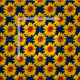 Felices girasoles en azul. Los colores complementarios se acentúan unos a otros en esta tela.