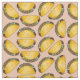 El tejido presenta un ilustracion original de tacos de concha dura con carne de res, lechuga, queso y crema agria, impresos sobre un fondo tostado.
