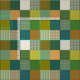 Una tela de falso patchwork chic con cuadrados de varios patrones que se coordinan con la colección "Tambores de la selva" Posh y Painterly.