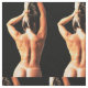 Hermoso modelo de gimnasio rubio que muestra líneas de bronceado bikini en el costado para personalizar