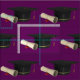 Tela con ilustracion de título y diploma. Fijado sobre un fondo morado de bonito.