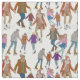 Un patrón de tela repetida de patinadores de hielo acuarela presenta patinadores elegantes en movimiento intermedio, capturados en brochas suaves y fluidas que fluyen a la perfección por el tejido. Los patinadores se representan en diferentes poses, con suaves lavabos de blues y platas que crean un ambiente de ensueño y invierno sobre un fondo pálido y helado.