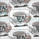 Ilustracion de un té con un platillo de china, con una cocina o una galleta y una cuchara. Un cuadro para los amantes del té, de estilo retro con tonos medio.