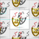 Gráfico de máscaras de teatro griegas que representan comedia (de color dorado) y tragedia (de color plateado) | no es adecuado para el fondo oscuro