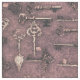 diseño de tela espeluznante y caprichoso con varias llaves y cerraduras en un fondo morado oscuro. Las llaves y los bloqueos tienen formas y tamaños diferentes, algunos con detalles complicados y otros con formas simples. El diseño es perfecto para los proyectos de Halloween, como disfraces, colchas, almohadas, cortinas y más.