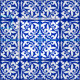 Tela inspirada marroquí del modelo de la teja - azul de cobalto con un fondo blanco