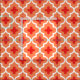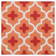 Tela en un modelo marroquí clásico de la teja de las formas árabes acodadas del friso, en mandarina, acentuado con anaranjado oscuro, y confinado en blanco