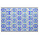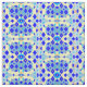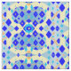 El diseño de esta tela contemporánea presenta un diseño geométrico abstracto moderno de diamantes azules y triángulos acentuados con amarillo, oro, naranja y turquesa.