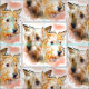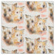Dos cabezas pintadas de color agua del terrero australiano que aparecen en esta tela en un patrón repetido alternado, cada conjunto de cabezas es de aproximadamente 4 por 4 pulgadas