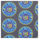 Tela de algodón bosnio-estadounidense de Nueva York. Diseño bosnio de Nueva York en azul y amarillo, con la bandera del estado de Nueva York en el centro y la bandera de Bosnia Herzegovina en los lados.