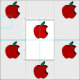 Esta tela contiene un patrón de manzanas parcialmente mordidas.