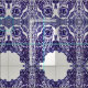 Mi original mural de búho de cerámica con derechos de autor en azul cobalto y blanco crea un impresionante patrón de tela.