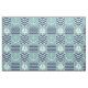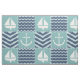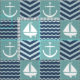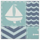 Un tejido inspirado en las plazas turquesas tormentosas, adornado con un velero y un ancla blancos, y cuadrados azul marino profundos, acentuados por cantos y olas azul claro, se acentúa con puntas blancas para crear un ambiente náutico clásico.
