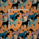 Diseño original de tela impresa personalizado con siluetas de perro boxeador llenas de llamativos motivos florales y láminas