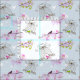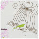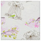 Bonito, pájaros románticos, flores y jaulas de aves en un patrón mayor. Fondo azul claro con corazones blancos. Versión impresa más pequeña disponible en mi tienda.