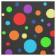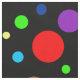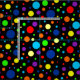 Un patrón de puntos arcoiris de diferentes tamaños sobre un fondo oscuro.
