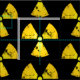 Tejido de patrón de símbolo de advertencia de radiación en negro y amarillo. Escoja entre varios tipos de tela en fibras naturales o sintéticas.