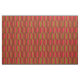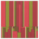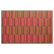 Este sencillo pero decorativo diseño de tejido moderno presenta un colorido patrón abstracto retro de rayas geométricas en colores rojo, naranja, marrón, verde oliva, negro y marrón.