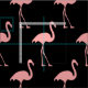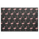 Tejido textil con motivos flamingos rosas. Personalizado imprimió textiles. Suministros y accesorios para proyectos de DIY divertidos para adultos y niños. Haz tu propia ropa, decoraciones y más. Diseño de pájaros tropicales con fondo negro.