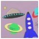 Un diseño colorido y caprichoso con un hombre astronauta, un cohete espacial, platillo volador, planetas y estrellas. Impresión de novedad fabulosa disponible en varios estilos y longitudes de tela para satisfacer sus necesidades de artesanía y costura. ...