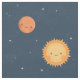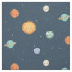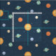Un patrón de tema espacial lindo que viene con garabatos del sol y varios planetas coloridos incluyendo la Tierra que tiene nubes locas como cejas.