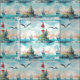 Tela Tema náutico con faro y pájaros
