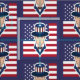 Tela con un ilustracion del Tío Sam con la bandera estadounidense como fondo, 4 de julio diseño patriótico de Maxi Harmony / Radka Kavalcova; versión azul