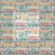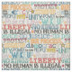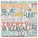 Patrón de tipografía política originalmente dibujado a mano con tinta, que incluye despertar, levantarse, unidad, votar, poder para el pueblo, estado de derecho, no reyes, libertad, ningún ser humano es ilegal, no hay justicia, no hay paz, debido proceso, protesta y democracia.
