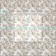 Elegante diseño de mosaico de color beige con rosas florecientes, flores delicadas y ramas elegantes y curvadas sobre un fondo blanco.