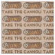 Fabric presenta un original ilustracion de marca de un delicioso cannoli, con TAKE THE CANNOLI escrito en un divertido tipo de letra marrón. Impreso sobre fondo bronceado.