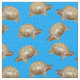 Hacer el regalo perfecto para los fanáticos de las tortugas con este material. La tela tiene un patrón de fotos de tortugas de la caja oriental colocadas sobre un fondo de impresión azul brillante.