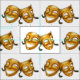 Gráfico de máscaras de teatro griegas que representan tragedia y comedia, patrón de repetición, personalizable de color de fondo