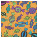 Estos coloridos caramelos duros de Halloween en color morado, turquesa, negro y verde harán una tela dulce para los proyectos de Halloween DIY. El fondo es naranja con círculos.