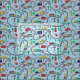 Tela Trenes Cars Bus Road Railroad Track en azul pálido