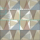 Un diseño artístico abstracto retro minimalista con triángulos coloridos de varias formas y tamaños.