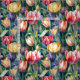 Las flores cortadas duran sólo unos días, pero una bella pintura acuarela de tulipanes coloridos durará mucho más. Este campo de tulipanes multicolores en plena floración tiene un fondo oscuro y flores vívidas.