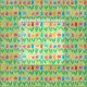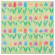 La primavera está en el aire con esta tela que ofrece los tulipanes caprichosos adornados con los modelos de la diversión incluyendo los lunares, rayas y remolinos, en sombras de rojo, de azul, el naranja y la púrpura en un fondo verde.