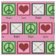 Un lindo regalo de bastón giratorio con un signo de paz y un corazón al lado de dos varas que lee PEACE LOVE TWIRL en un fondo rosado bonito.