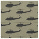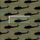 Perfecto para proyectos de costura de temática militar, camisetas fiestas o decoración de habitaciones para niños, esta tela presenta un patrón repetido de un perfil negro y lateral del helicóptero UH-1 Huey. Puede personalizar del color de fondo haciendo clic en el vínculo personalizar y ajustar este patrón de tejido para que se ajuste a cualquier proyecto.