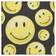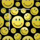 Una tela negra sólida que ofrece un racimo dispersado de caras felices amarillas.