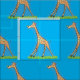 Del feliz safari. Esta tierna jirafa tiene una mariposa en su nariz con un fondo azul.