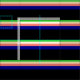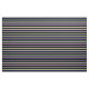 El diseño está decorado con colores a rayas verde lima, beige, salmón, azul oscuro y negro.