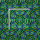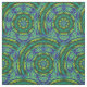 Estas características del diseño de la tela que un modelo abstracto circular tridimensional geométrico brillante coloreado de la mandala del caleidoscopio traslapado curva y que circunda en verde, azul mágicos, misteriosos, místicos con todo modernos, oro, turquesa y amarillo.