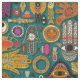 Patrón de talismán ilustrado, dibujado originalmente con tinta. Presenta varios objetos que se cree confieren buena fortuna, salud y felicidad. Talisman, amuleto, suerte, ojo malvado, hamsa, magia, zorro, phoenix, scarab, yin y yang, joyería, joyería, encanto, ilustracion, joyería, metalizado, verde viridiano