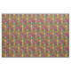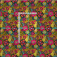 Un patrón floral abstracto en tonos vivos de verde, oro y rosa magenta.