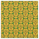 Vibrante tela de impresión africana con motivos y hojas dorados amarillos, verdes y rojos