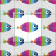 Coloree los pescados terminados en un modelo rayado vertical. Sombras del naranja, de la púrpura, del verde, del azul, y del negro contra el fondo blanco. Perfeccione para los pescados, el acuario, el mar, o el amante del océano en usted vida. Cree algo fabuloso con bajo modelo de la tela del mar. Orden hoy.